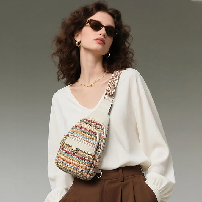 • Premium & Durable Materials – Crafted from high-quality vegan leather and sturdy rainbow straw, this chest bag offers a lightweight (0.7 lbs) yet durable build. The breathable woven shoulder strap ensures comfort, making it ideal for all-day wear.