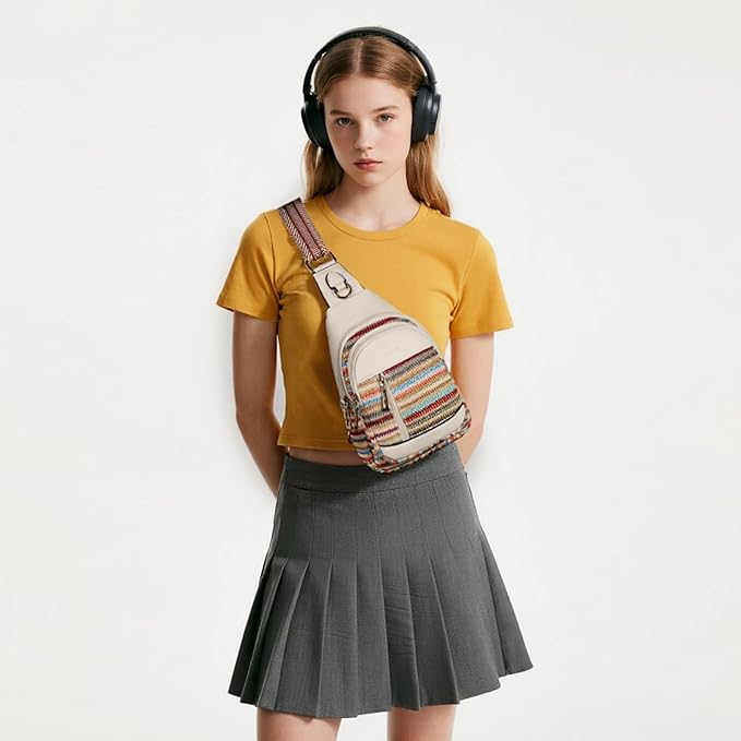 - Premium & Durable Materials – Crafted from high-quality vegan leather and sturdy rainbow straw, this chest bag offers a lightweight (0.7 lbs) yet durable build. The breathable woven shoulder strap ensures comfort, making it ideal for all-day wear.