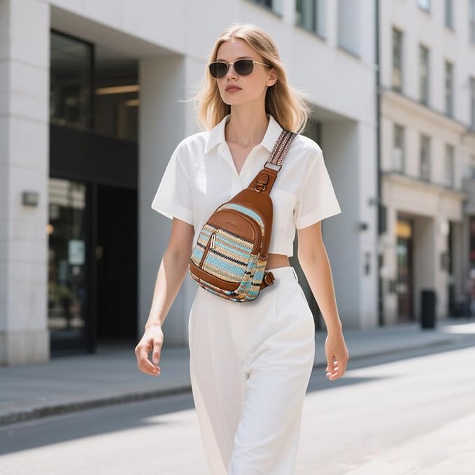 - Premium & Durable Materials – Crafted from high-quality vegan leather and sturdy rainbow straw, this chest bag offers a lightweight (0.7 lbs) yet durable build. The breathable woven shoulder strap ensures comfort, making it ideal for all-day wear.