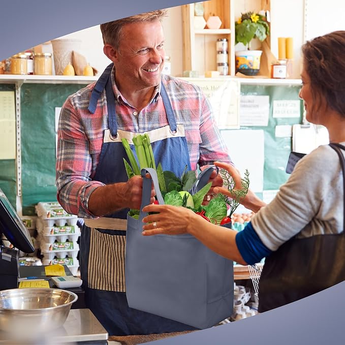 Reginary Reusable Totes Bags - 100 Pcs Non Woven Grocery Handle Bags for Shop Events & Retail Store (Dark Gray)