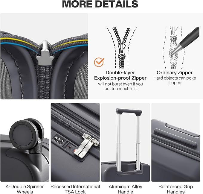 - Anti-Burst Zippers: Our expandable luggage features a Double-Layer Anti-Burst Zipper design which meets standards for increased durability. Carry everything you need with confidence during trips
