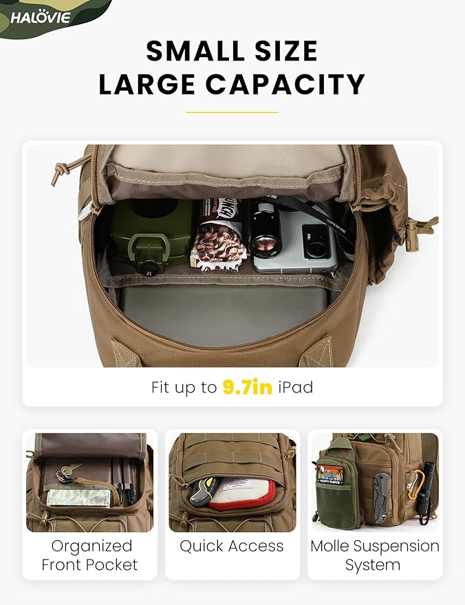 HALOVIE Anti-theft Tactical Sling Bag RFID Khaki Military Shoulder Bag with Phone Pack EDC Molle Crossbody Bag for men