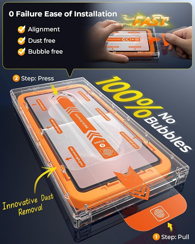 - [Auto Dust Removal Install Cabin] The new 2025 automatic dust removal installation cabin allows you to achieve perfect alignment. Even if you are a novice, you can easily succeed with our tools. Using automatic dust removal and adsorption technology, there is absolutely no need to worry about small air bubbles caused by a small layer of dust, the installation is 100% efortless and the success rate of the installation is 100%.