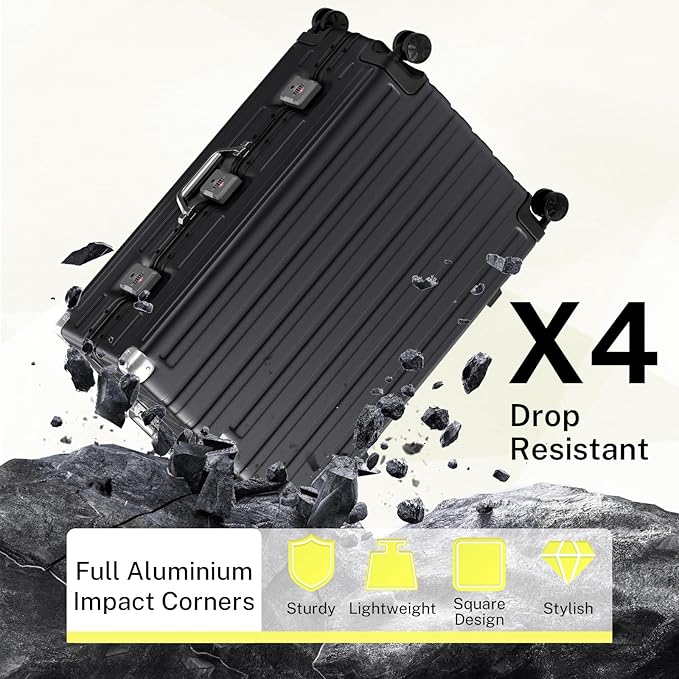 - 【Aluminum Frame Luggage】 We include 70% PC for high quality. PC is durable and strong to protect belongings. 70% Strong (PC) + 30% Light(ABS) makes it lighter,while reinforced aluminum frame provide added durability for demanding travel. The sturdy suitcase protects belongings even with rough handling.