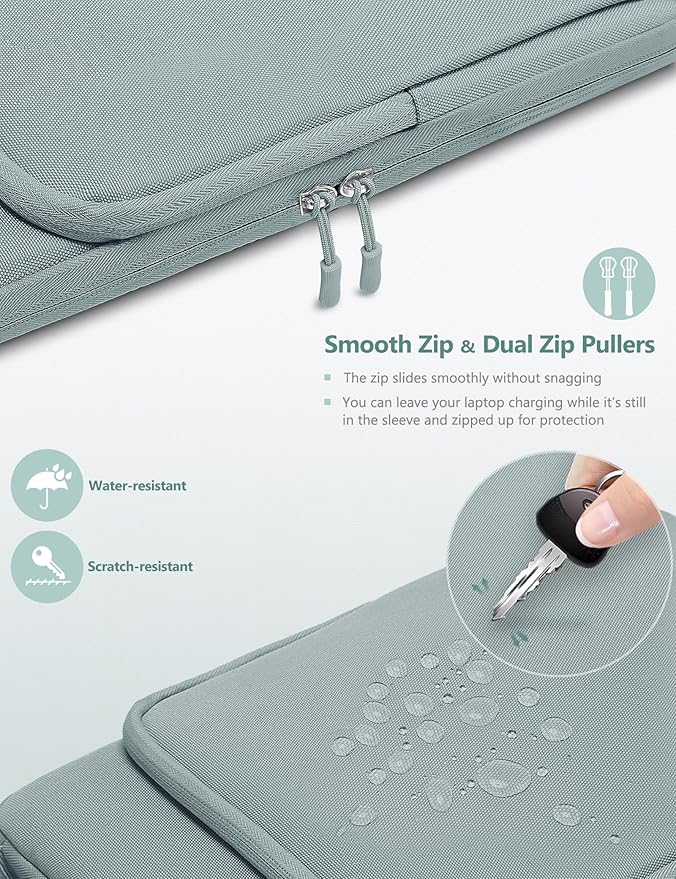 - Superior Multi-Protection: The outermost fabric is water-resistant and wear-resistant, the inner material is 8mm shockproof sponge and soft velvet, with an elasticated fixing strap to hold the laptop in place, perfectly protecting your laptop from spills/scratches/accidental drops. There is also a protective ridge around the perimeter to prevent your laptop from being scratched by zips