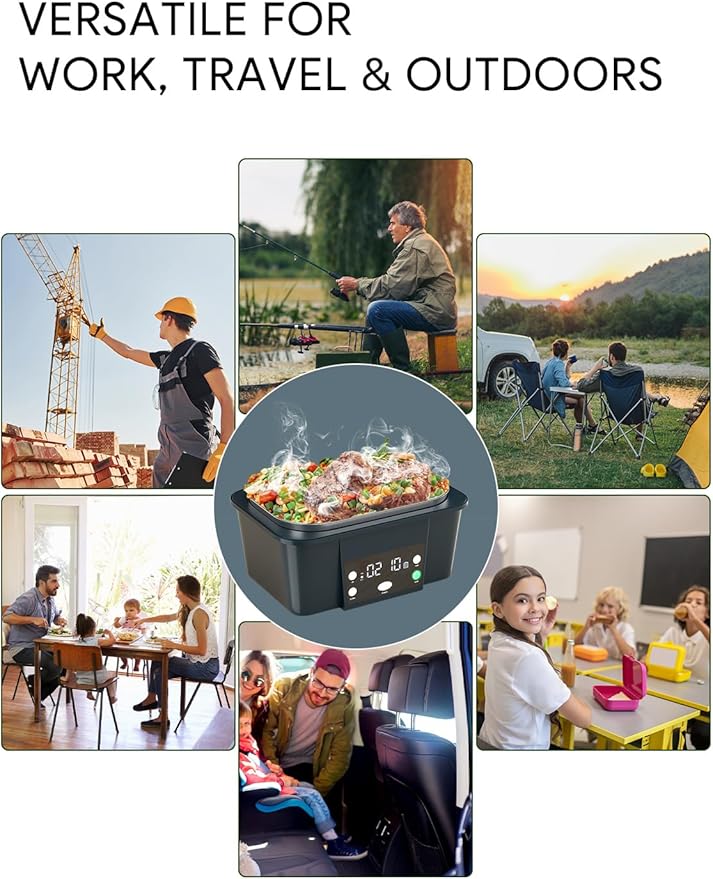 - Portable Self-Heating Lunch Box: Enjoy hot meals anytime, anywhere—whether at work, on the road, or outdoors. This compact, battery-powered heater requires no outlet, warming your food effortlessly on the go and keeping it at the perfect temperature for hours.