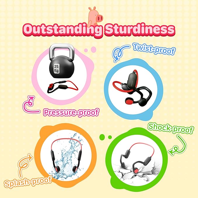 - 【Outstanding Sturdiness】Made of memory titanium, the kids wireless headphones can restore their shape after being curled over 360 degrees and won't deform under heavy pressure. With an IPX5 rating, kids' headphones can handle daily rain and sweat. Also withstand drops from high places
