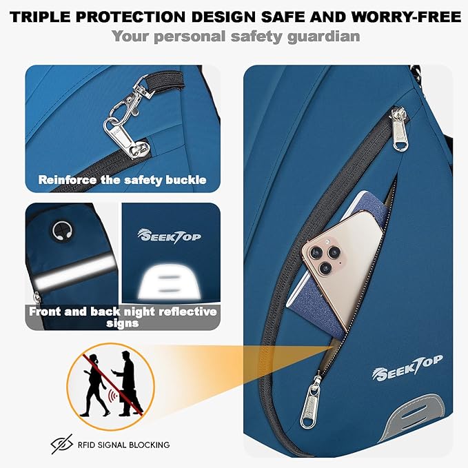 Seektop Crossbody Bag Anti-Theft RFID Blocking Waterproof 400D Nylon Lightweight Small Sling Backpack Shoulder Bags Chest Pack Cross Body Bag for Travel Hiking Outdoor Men Women Blue
