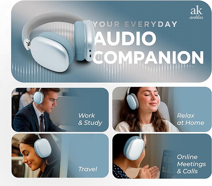 - Ergonomic & Ultralight Comfort: Designed for extended sessions, these over-ear Bluetooth headphones feature breathable mesh fabric earmuffs, an adjustable ABS and metal headband, and a lightweight construction that reduces pressure for all-day wear.