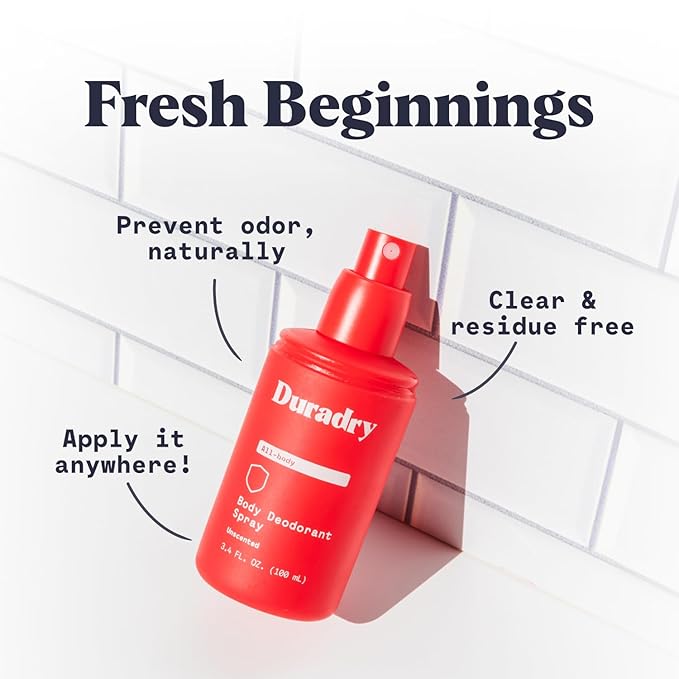 - ALL DAY ODOR PROTECTION: Stay confident and odor free all day with Duradry's deodorant spray for the whole body. Most people can expect to apply the spray once or twice daily