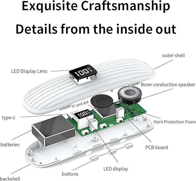 - 【NOTE】The material and thickness of the pillow are key factors affecting the bone conduction effect of the speaker. Different bone conduction performances will also vary - for example, a thicker pillow or a pillow made of latex may affect the sound conduction efficiency.