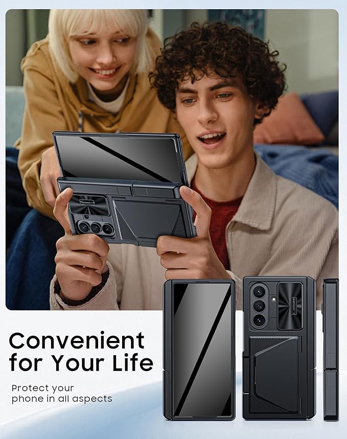 - Sliding Lens Protective Cover: This Galaxy Z Fold 7 case built in sliding camera lens cover. The newly designed sliding camera cover has a more sensitive slide rail and a safer lock than previous versions. The grinding mark on the lens cover and the raised side design allow you to slide the lens cover more easily. When you don't need to use the camera, you can fully cover the camera lens with just one second to protect your Galaxy Z Fold 7 phone lens from scratches and damage.