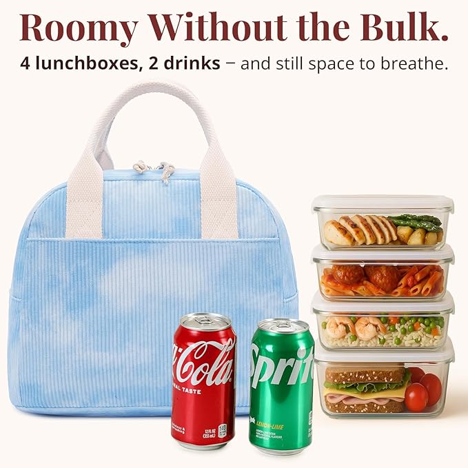 - Durable Corduroy with Premium Finish: Crafted from soft, high-quality corduroy in a playful color, this lunch tote combines cozy aesthetics with dependable durability. Reinforced handles and smooth-glide zippers support long-term daily use