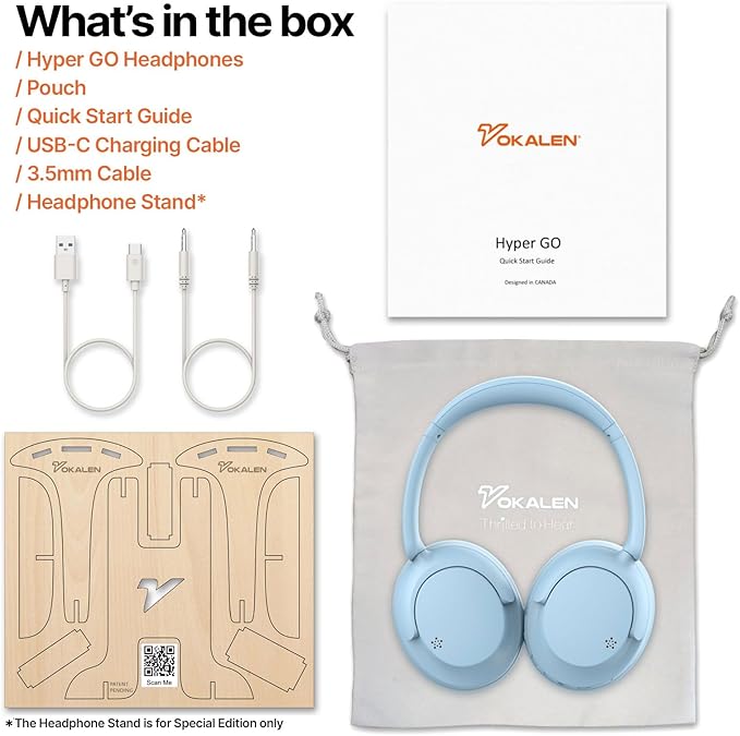 - Vokalen Connect App Customization: Personalize your audio experience with the Vokalen Connect App. Adjustable EQ and ANC levels for rich, customized sound in your wireless Bluetooth headphones.