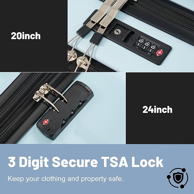 - Safe: Our 3-piece luggage sets are equipped with explosion-proof double zippers, offering an additional storage space. The TSA lock is designed to avoid violent damage to the luggage, which allows only customs agents to inspect your bags without damaging the lock when traveling.