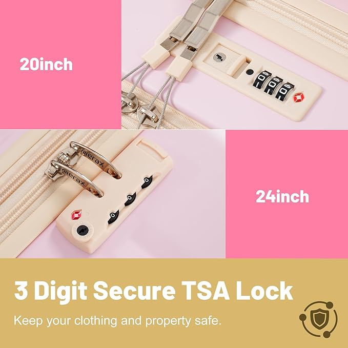 - Safe: Our 3-piece luggage sets are equipped with explosion-proof double zippers, offering an additional storage space. The TSA lock is designed to avoid violent damage to the luggage, which allows only customs agents to inspect your bags without damaging the lock when traveling.