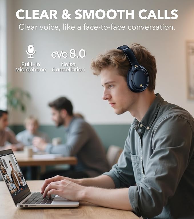 - CLEAR CALLS, JUST LIKE FACE TO FACE: With powerful cVc 8.0 noise cancellation, these over-ear noise cancelling headphones block background noise so your voice comes through crisp and natural. Perfect for meetings, voice chats, or video calls, they make every conversation feel effortless and in-person.