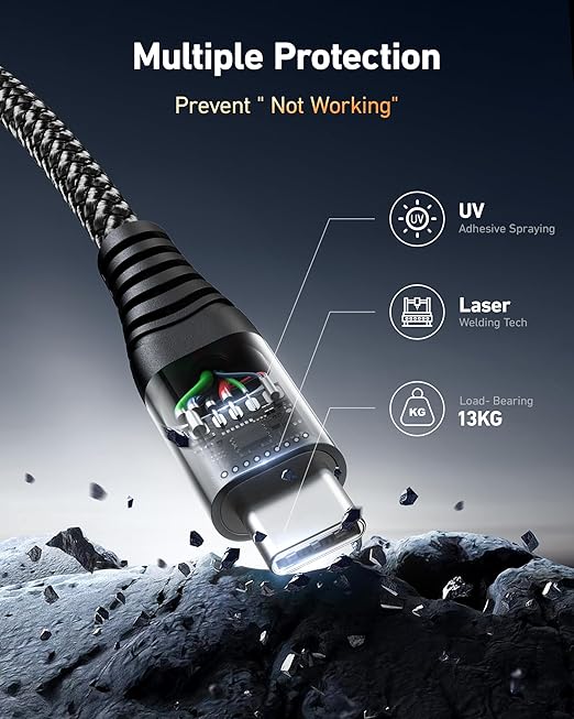 - 【Super Durable iPhone 17/16 USB C Cable】Our USB-C fire wire is made from high-quality materials and manufactured using state-of-the-art processes, and has undergone rigorous quality testing. This nylon braided USB to USBC cable features a nylon braided design that effectively prevents cable tangling (also suitable for use in cars). Made from high-strength fibre material, it offers excellent flexibility, strength, and durability, capable of withstanding over 40,000 bend tests. It can handle daily connection needs and supports long-term use.