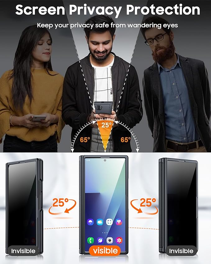 - 【Built-in Screen Privacy Protector】The Galaxy Z Fold 7 case has a built-in screen privacy protector to prevent others from seeing your screen from the side, so you don't have to worry about being peeked at when chatting, doing work or paying passwords on your phone, protecting your privacy.
