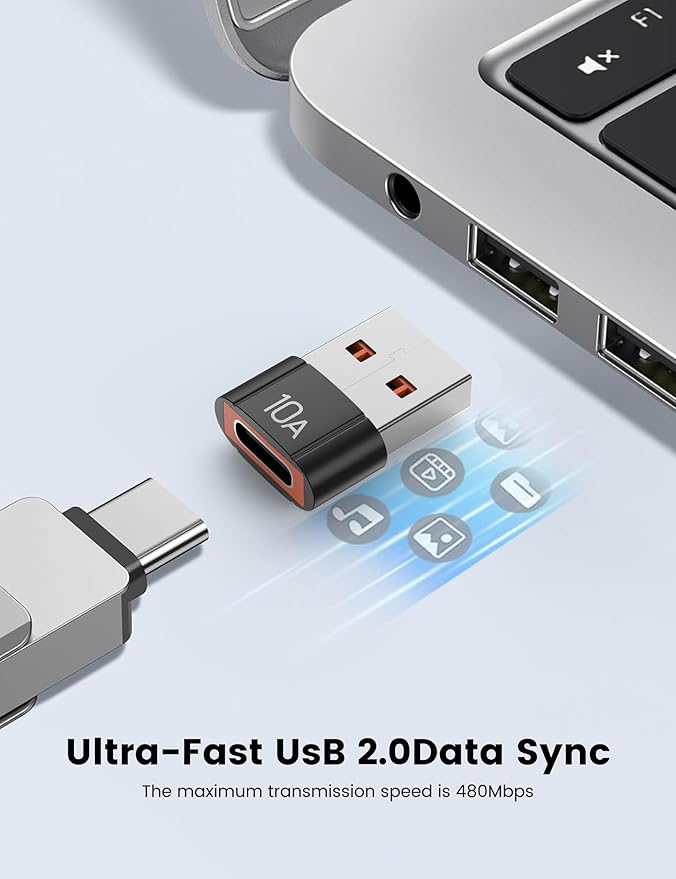 - [For Charging and Data Transfer]: The USB a to usb c adapter 2.0 supports 200W power output for charging, fast charging speed, and provides a data transfer standard, with a theoretical maximum data transfer speed of up to 480Mbps, providing and fast video, music, and file transfer