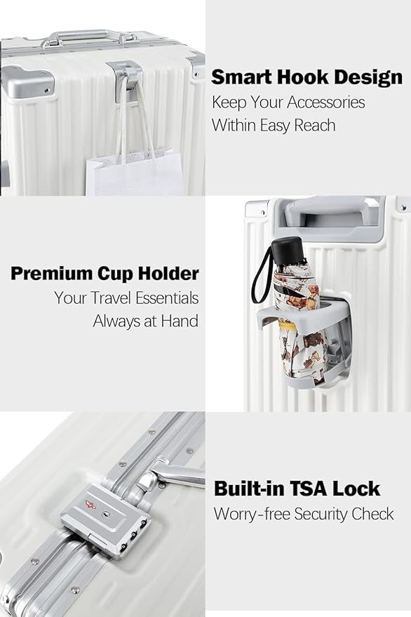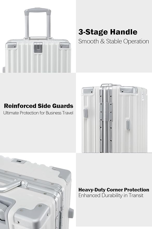 - SECURE ALUMINUM FRAME: Say goodbye to broken zippers with our zipperless hard shell luggage. Featuring a sturdy aluminum frame and easy-to-use latches, this suitcase offers better security and smoother access to your belongings.