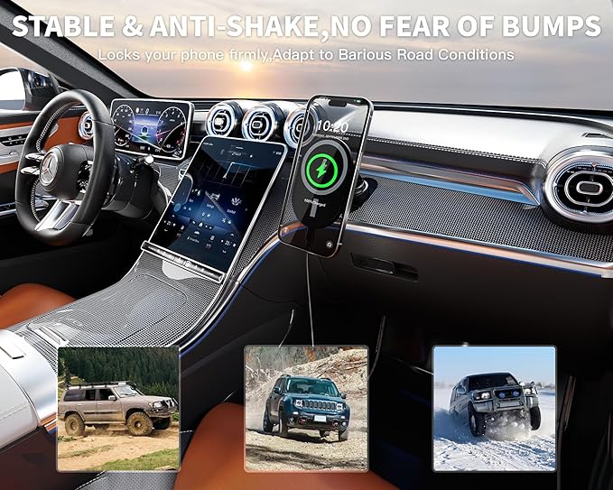 - Case Compatibility + Wide Device Adaptation:This cell phone car mount supports charging through most cases up to 5mm thick.As a popular car accessory for women and all users,it’s widely compatible with Qi-enabled devices:iPhone 17/16/15/14/13/12/11 Pro Max/XR/XS/X/8 series,Samsung Galaxy S25/S24/S23/S22/S21 Ultra/Note 20/10 series,LG V60/V50/G8 series,Google Pixel 8/7 series,and other mainstream wireless charging phones.It’s the ultimate phone mount for car that fits most devices.